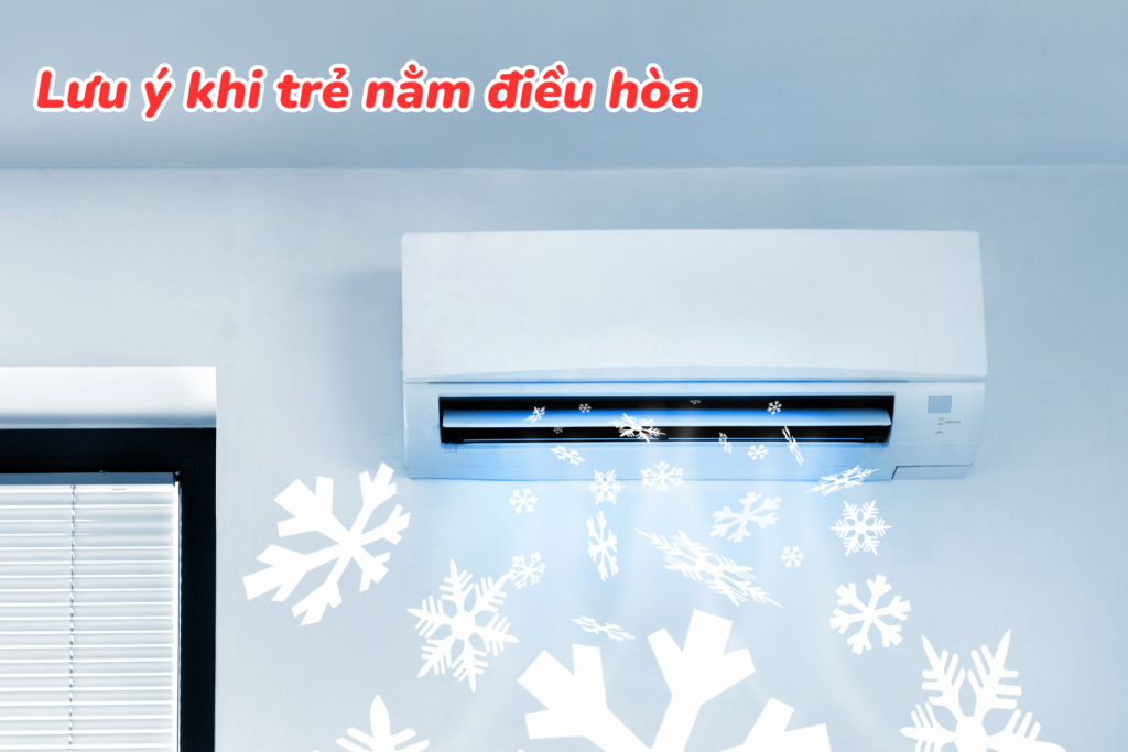 – Vị trí đặt điều hòa nên ở trên cao. Cánh cửa gió của điều hòa không đặt trực tiếp hướng về phía trẻ nằm, cũng không đặt tốc độ quạt gió quá mạnh. Nên đặt ở tốc độ quạt gió thấp nhất và để ở chế độ quay, tuyệt đối không để ở chế độ chạy thẳng một góc.