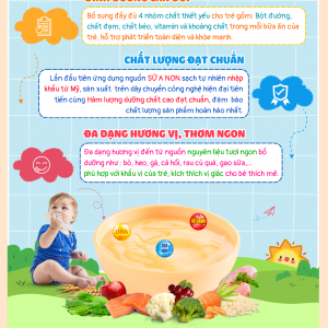 + Bột ăn dặm Bò – chùm ngây bổ sung đầy đủ dưỡng chất, bé ăn nhiều và chóng lớn, phát triển toàn diện hơn.
