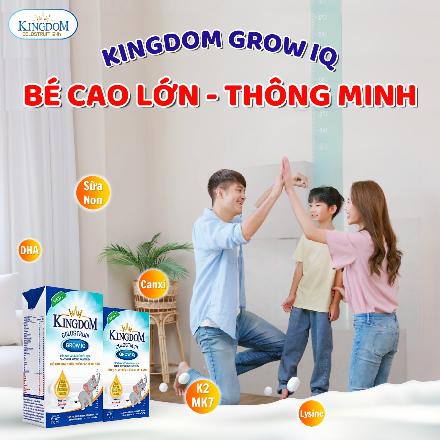 Sữa Bột Pha Sẵn KingDom Colostrum 24h Grow Iq có công thức đặc biệt với hàm lượng canxi cao vượt trội cùng với Vitamin D, Kẽm, Magiê và hàm lượng vitamin K2 cao, hỗ trợ tăng khả năng hấp thụ canxi, giúp bé phát triển chiều cao tối đa.