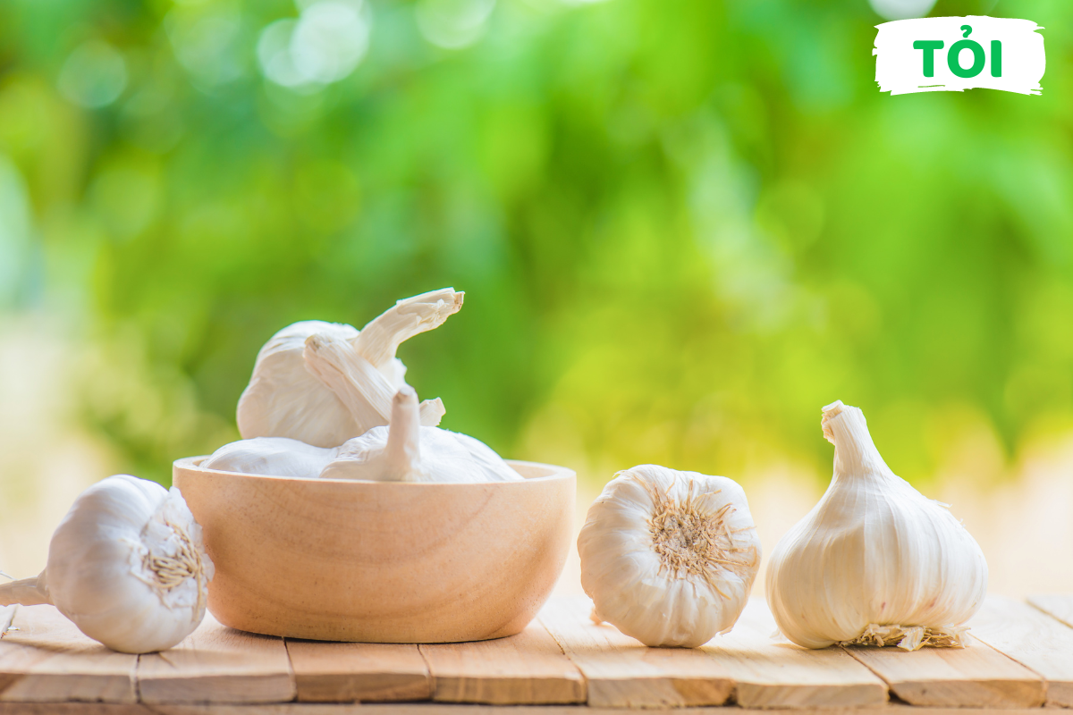 Tỏi có tác dụng kháng khuẩn và tăng đề kháng nhờ thành phần allicin bên trong tỏi. Theo các chuyên gia, tỏi giúp đề phòng cảm cúm, giảm đờm, trị ho,.. Trẻ từ 6 tháng tuổi trở lên, có thể uống nước ép tỏi pha loãng hàng ngày với lượng vừa phải để tăng đề kháng. Đối với trẻ nhỏ, mẹ có thể dùng tỏi làm gia vị trong các món ăn, mẹ nên đập dập hoặc thái lát tỏi trước khi nấu 10-15 phút. Không nên nấu ở nhiệt độ quá cao. Mẹ chú ý cần sử dụng với liều lượng phù hợp với trẻ.